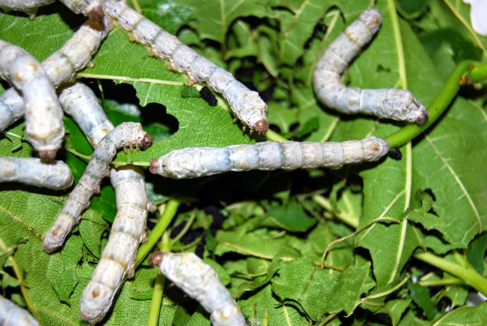 - The best-known type of silk is obtained from the cocoons of the larvae of the mulberry silkworm Bombyx mori reared in captivity (sericulture).